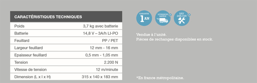 Combiné de cerclage sur batterie nouvelle génération, ultra performant, avec soudure à friction.