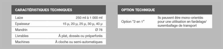 Films monocouches reconnus pour leur solidité et leur performance de rétraction, même à faible température (à partir de 40°C).