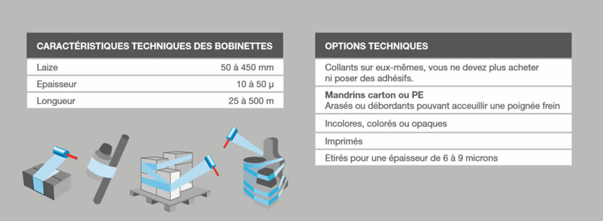 Petites laizes de films étirables manuels – 125 mm – économiques et multi-usages.