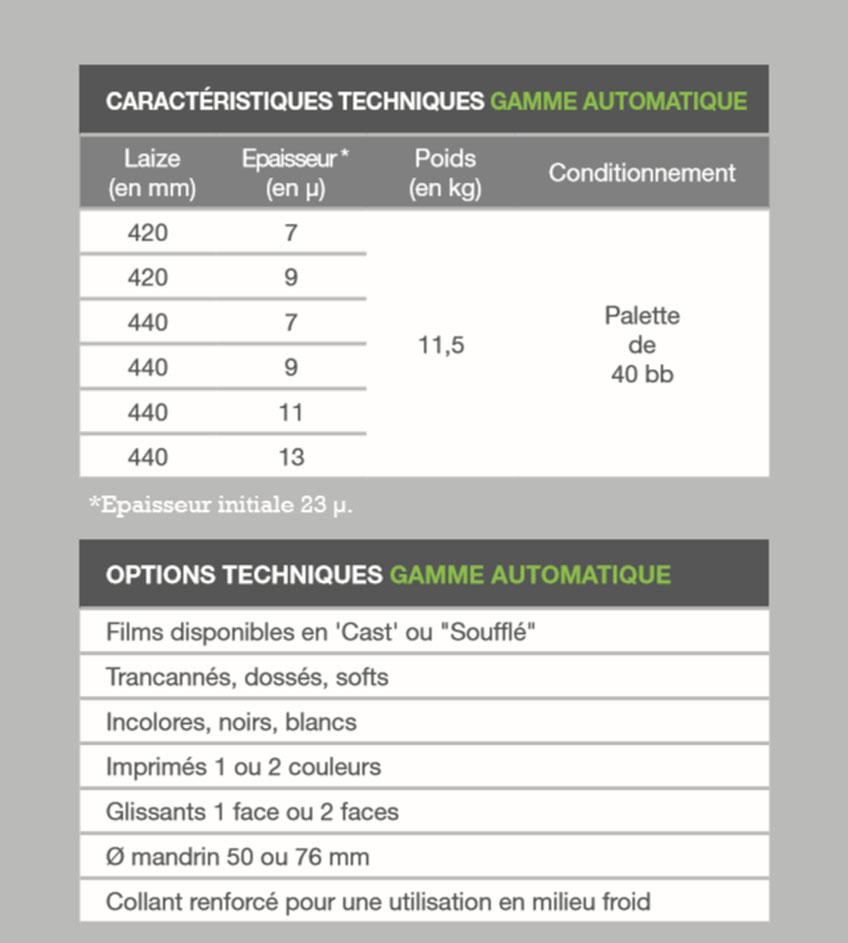 Films performants et économiques permettant d’éviter tout système de pré-étirage machine, coûteux à l’investissement.