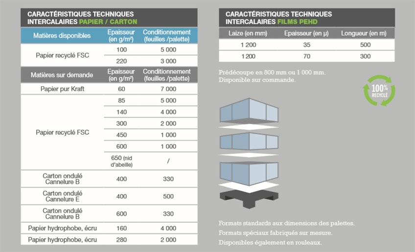 Les formats standards correspondent aux formats des palettes. Les formats spéciaux sont fabriqués sur mesure.