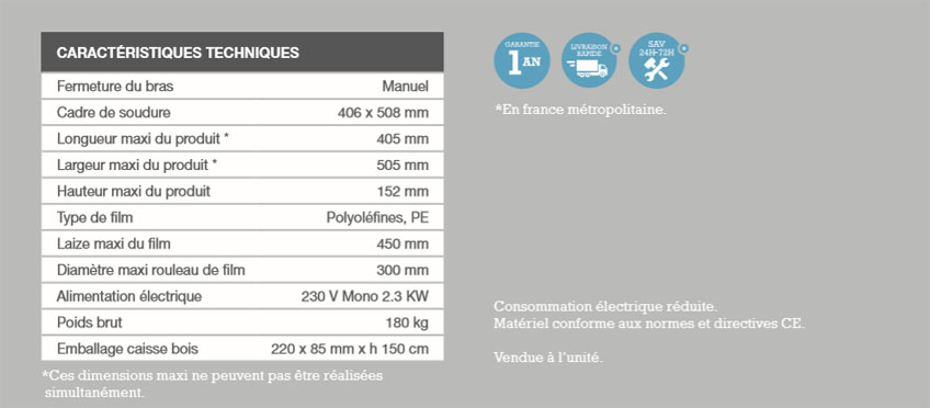 Idéale pour la mise sous films polyoléfines ou PE, de produits de petites dimensions.
