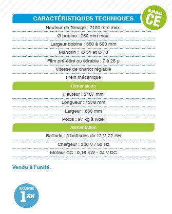 Idéale pour filmer jusqu'à 30 palettes/jour. Contribue à réduire la pénibilité du travail de filmage de palettes.
